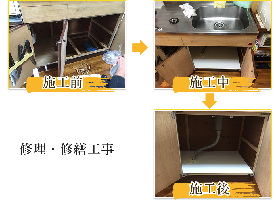 排水溝や配管からの水漏れ・詰まり、給湯器の故障など住まいのトラブルから、ドア建具の調整やふすまや障子、網戸の張り替えや畳の表替えなど住まいのお悩みに迅速に対応いたします。