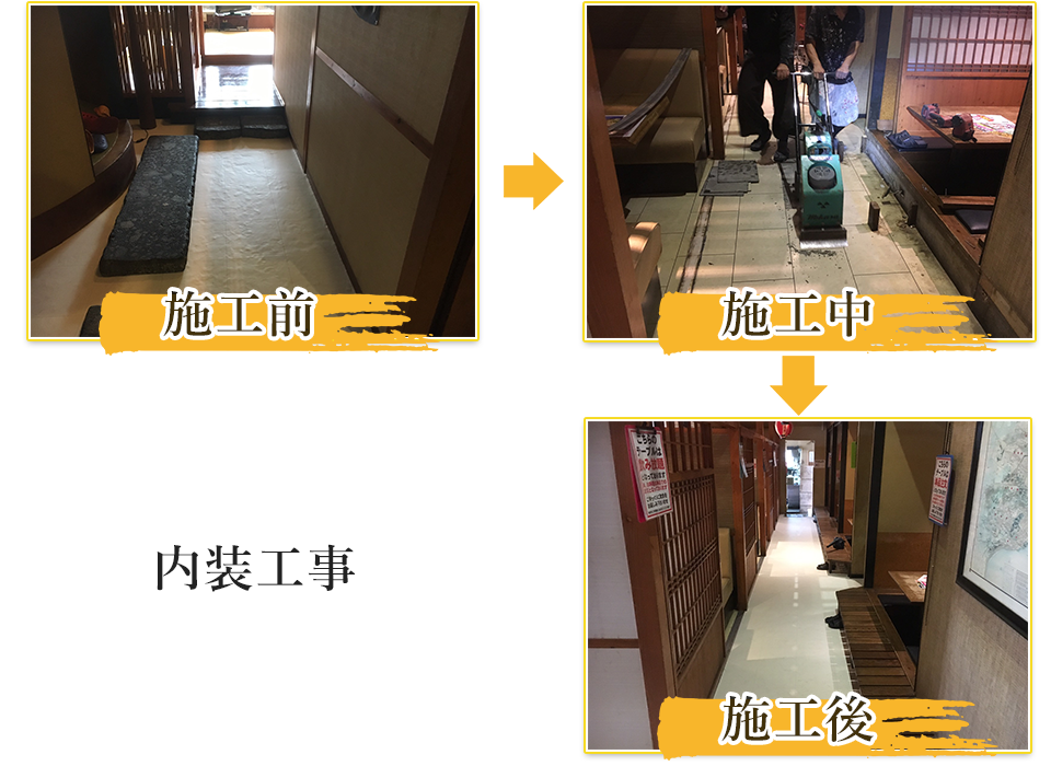 クロス・カーペット・クッションフロアー、フローリング等の張替工事、畳・表具・ふすま・網戸の張替工事など工事の大小にかかわらず、柔軟、迅速に対応しています。